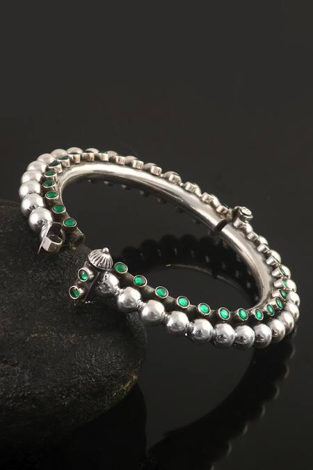 Buy_Noor_Green Pearls, Stones Embellished Bangle_Online_at_Aza_Fashions