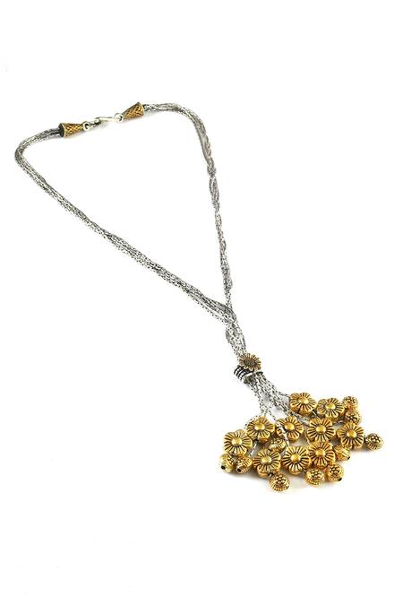 Buy_Noor_Silver Plated Floral Design Pendant Chain Necklace_at_Aza_Fashions