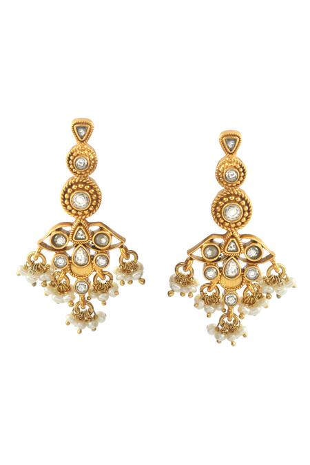 Floral drop patterns with jadau and kundan embellishments, Push back closure for secure fit
