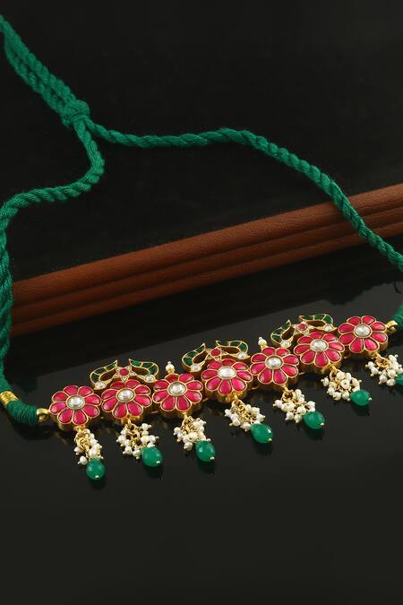 Buy_Noor_Pink Floral Kundan Embellished Choker Necklace_Online_at_Aza_Fashions