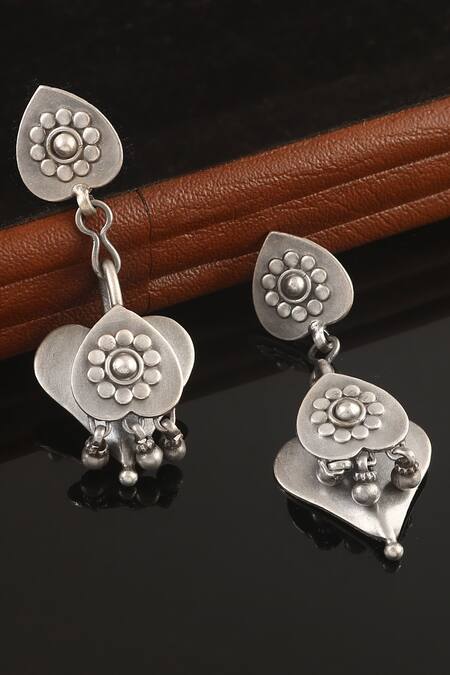 Buy_Noor_Silver Plated Floral Oxidised Dangler Earrings_Online_at_Aza_Fashions