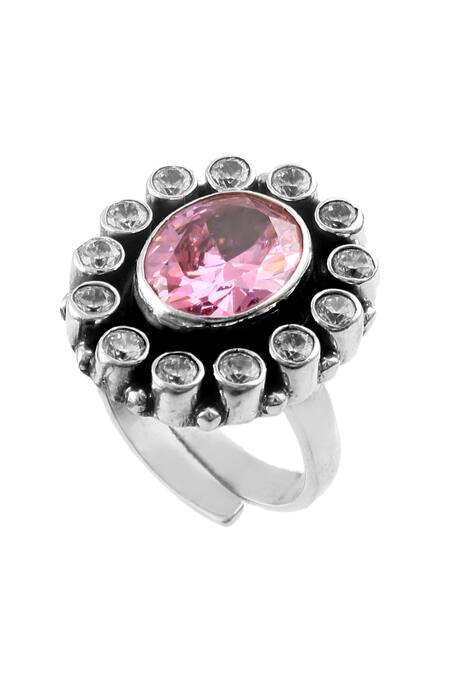 Embellished with pink and white zircon stones, Floral design with a central oval stone