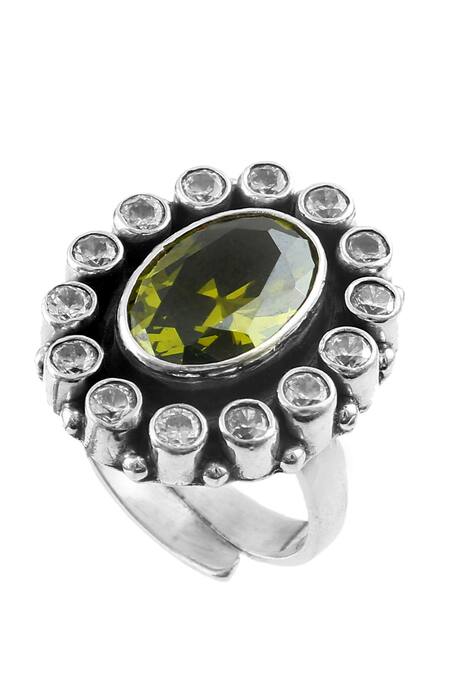 Embellished with green and white zircon stones, Floral design detailing, Oval-shaped center stone