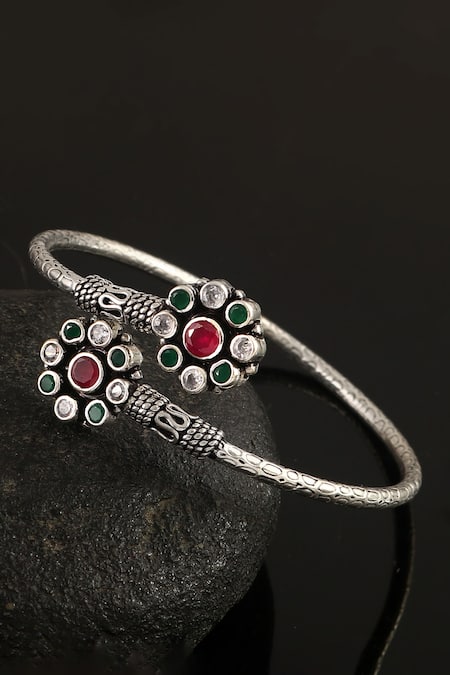 925 sterling silver bangle featuring floral cut stone embellishments