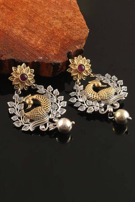 Dangle earrings with floral and peacock motifs