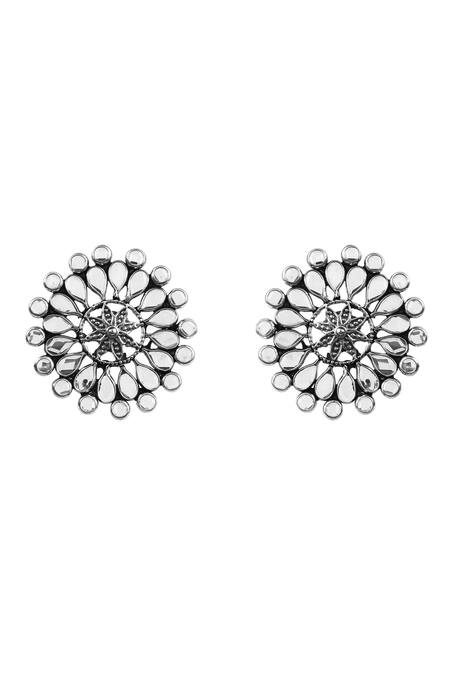 Buy_Noor_Silver Plated Stones Polki Embellished Flower Studs_at_Aza_Fashions