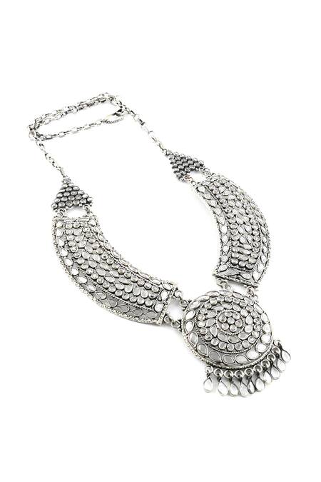 Buy_Noor_Silver Plated Polki Embellished Necklace_at_Aza_Fashions