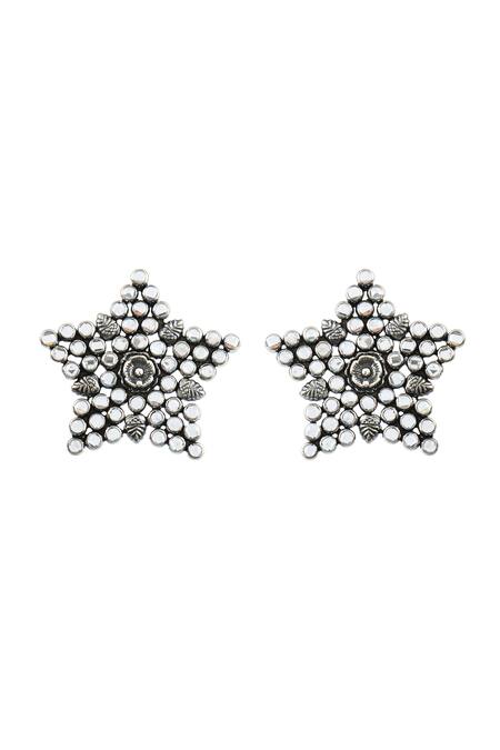 Star shaped design with intricate polki stone embellishments., Crafted from high-quality 92.5 sterling silver.