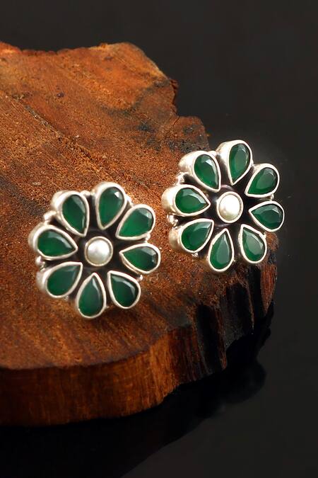 Buy_Noor_Silver Plated Stones Embellished Stud Earrings_Online_at_Aza_Fashions