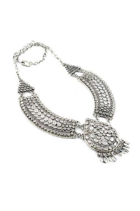 Silver Plated Teardrop Polki Embellished Necklace