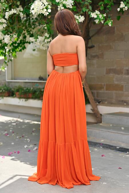 Orange Georgette Solid Sweetheart Rose Tube Maxi Dress