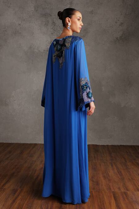 Blue Georgette Embellished Sequin Round Aitana Floral Applique Dress