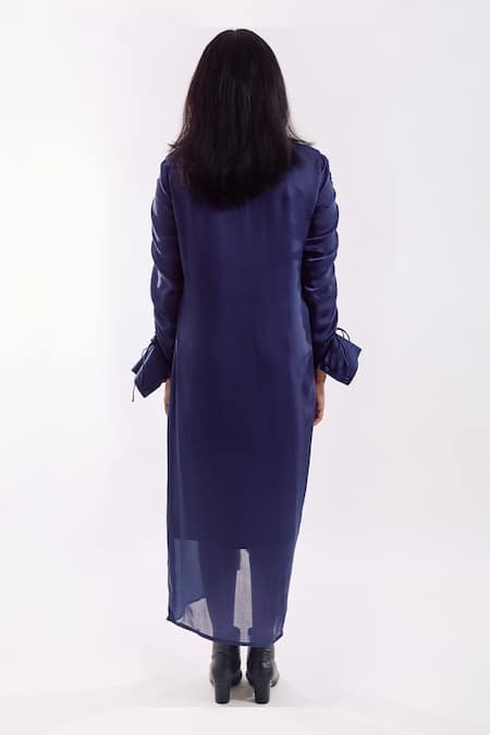 Navy Georgette, Satin Sequins Collared Draped Dress
