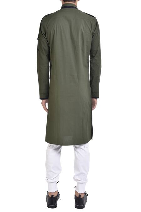 Buy_Noughtone_Green Cotton Pathani Kurta _at_Aza_Fashions