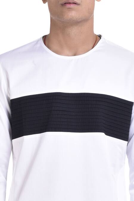 Buy_Noughtone_White Crew Neck Kurta With Pintuck Panels _at_Aza_Fashions