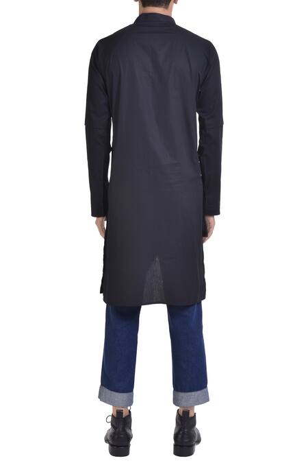 Noughtone_Black Stripe Panel Asymmetric Kurta _Online_at_Aza_Fashions