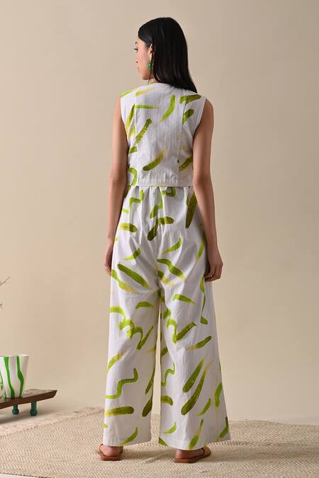 Ivory Cotton V-neck Nova Stroke Print Jumpsuit