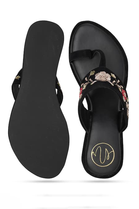 Floral embroidery with sequins on the strap, Comfortable toe loop design, 3-inch wedge heel for added height