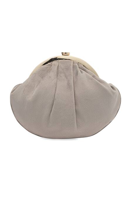 Gray Embroidery, Beads Grey And Gold Half Moon Clutch