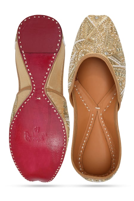 Buy_NR By Nidhi Rathi_Gold Handcrafted Leather Embellished Juttis
