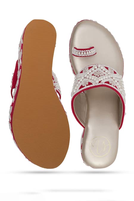 Magenta Pearls, Beads Embellished One-toe Wedge Heels