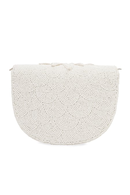 White Beads Patchwork Embellished Clutch