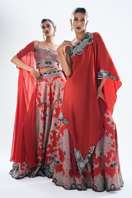 Orange Crepe, Georgette Sequins, Beads, Embroidery Cape And Hand Sharara Set