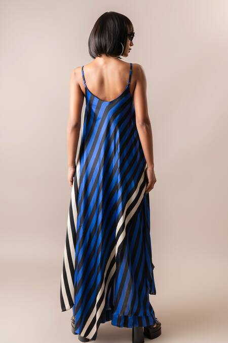 Buy_Nupur Kanoi_Multi Color Satin Scoop Strappy Singlet Stripe Print Top And Gathered Skirt Set_at_Aza_Fashions