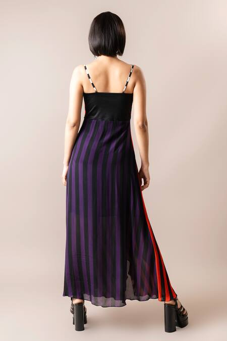 Buy_Nupur Kanoi_Multi Color Crepe Square Neck Stripe Digital Print Bustier Dress_Online_at_Aza_Fashions