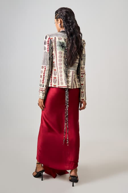 Buy_Nupur Kanoi_Off White Crepe, Tribal Floral Embellished Blazer With Bustier Asymmetric Dress _Online_at_Aza_Fashions