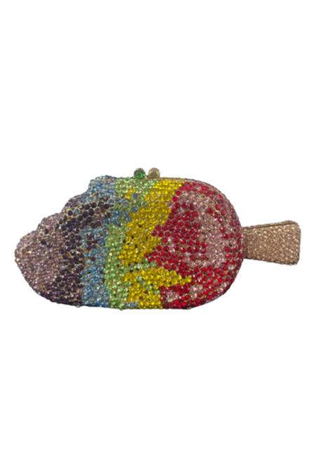 Multicolor popsicle shaped clutch featuring rhinestone and swarovski crystal embellishments