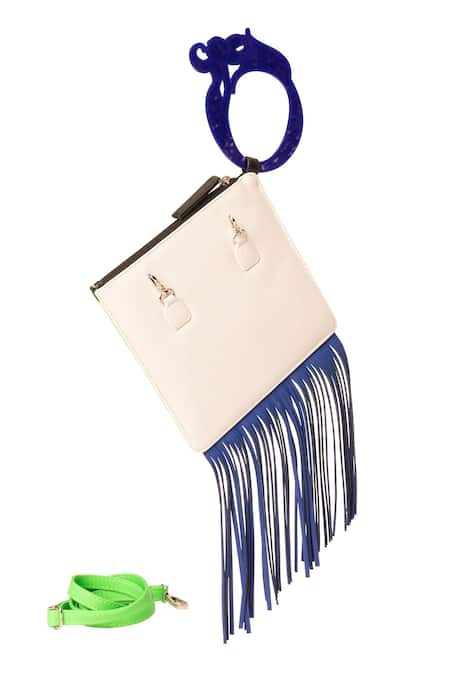 Resin logo handle, Fringes at the bottom, Detachable sling strap