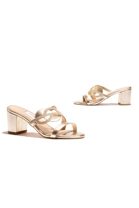 Gold Cutwork Monir Metallic Strap Block Heels