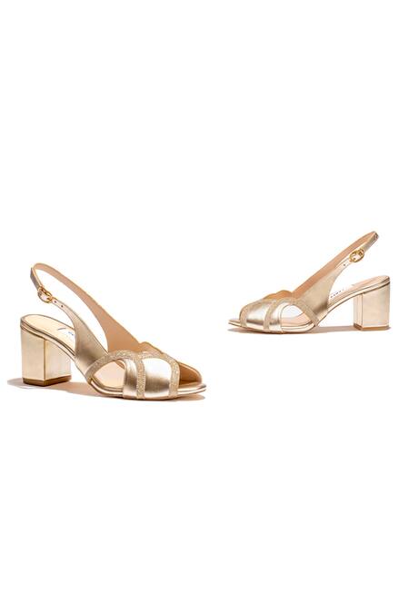 Gold Cutwork Saba Metallic Peep Toe Block Heels