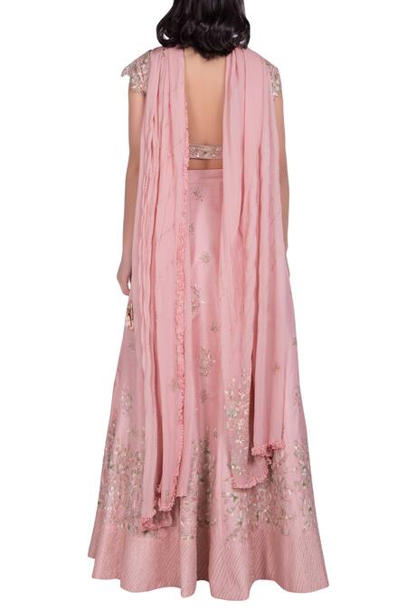 Pink Off Shoulder Embroidered Blouse With Lehenga And Dupatta