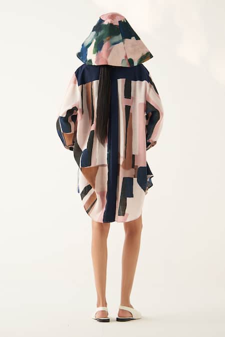 Multicolor shirt featuring abstract hand-painted print and box pleated detailing