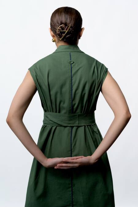 Green Cotton, Linen Collared Sleeveless Jacket