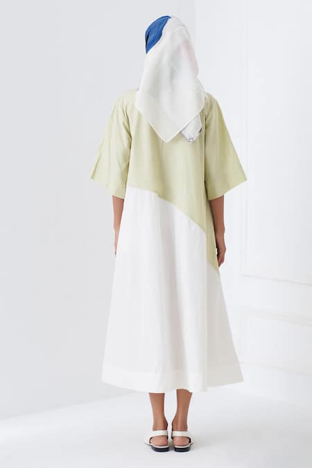 White and green cotton dress featuring an A-line silhouette