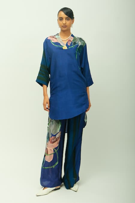 Blue Bemberg, Muslin Midnight Psy Hand Painted Print Pant