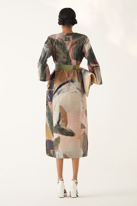 Multi Color Cotton V-neck Wallflower Abstract Hand Painted Gathered Dress