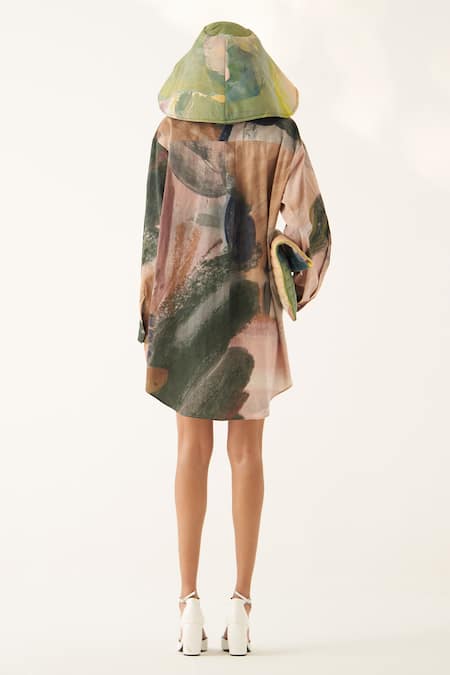 Multicolor shirt dress featuring a collar and full sleeves with an abstract hand-painted print