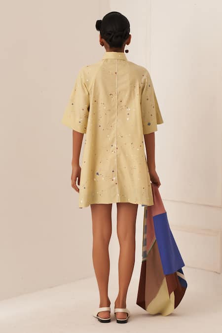 Beige Cotton Collared Wc Limon A-line Short Dress
