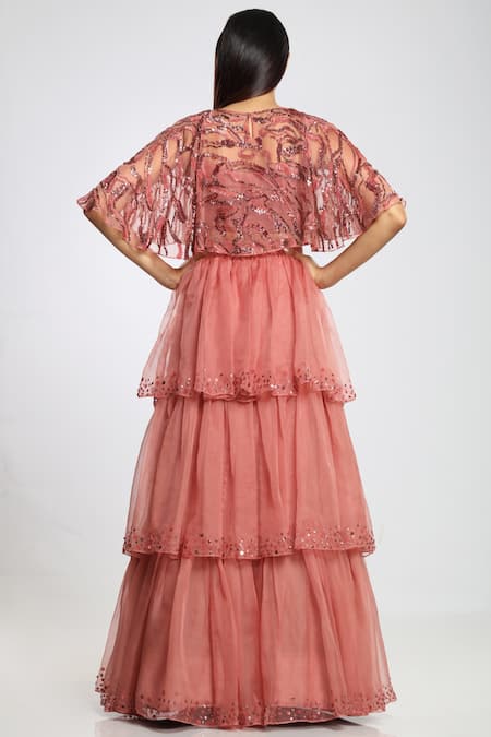 Buy_Ohaila Khan_Pink Organza, Layered Maxi Skirt _Online_at_Aza_Fashions
