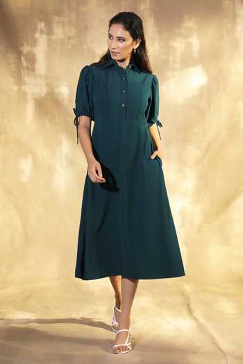 Green Moss Crepe Olivia Shirt Dress