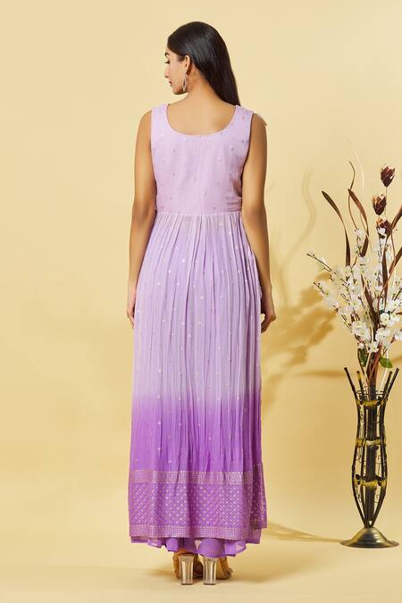 Lilac straight fit kurta with pleated flare featuring dyeable georgette embroidery & ombre effect on the hem. Comes with pleated palazzo pant & sequin embellished net dupatta.