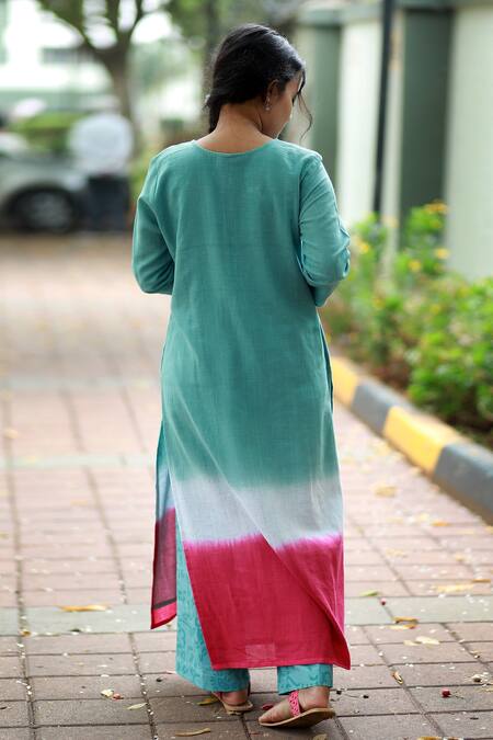 Buy_Tina Eapen Collective_Blue Cotton Plain Notched Ombre Kurta And Printed Pant Set_Online_at_Aza_Fashions