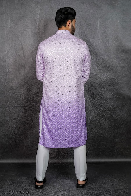 Lavender ombre kurta in georgette base with mirror work embroidery.