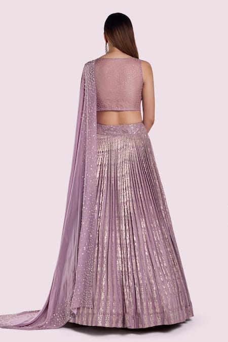 Purple Sequins, Cut Work V-neck Embellished Blouse And Lehenga Set