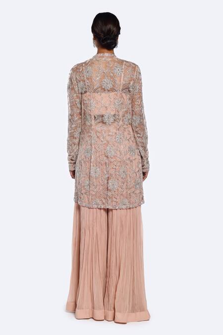 Pink Net, Georgette Cut Work, Floral Embellished Jacket Flared Pant Set