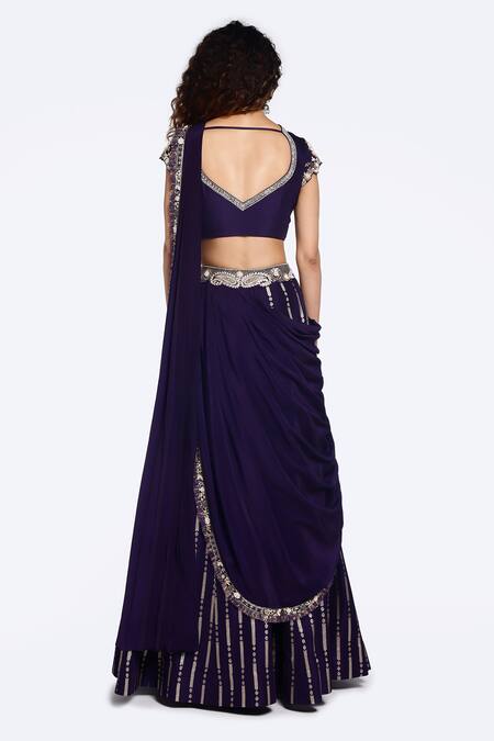 Purple Crepe Sequins Pre-draped Abstract Embroidered Lehenga Saree With Blouse